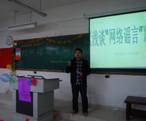 活动在共青团团歌中拉开序幕。一组网络谣言导致不良后果的案例展示向同学们介绍了谣言的危害和国内不同组织对网络的监管。原创话剧《对网络谣言Say No》通过对网络造谣事件的艺术演绎,向同学们告知了无事生非、随意造谣将负刑事责任的严重后果。随后的二胡演奏为整场活动增色不少,米泰年同学如痴如醉的演奏让在座观众如浴春风。个人演讲《浅谈网络谣言》从经济利益的角度对造谣行为进行了分析,并倡导大家理智判断、文明用网。活动最后,周琴老师总结发言。她指出,本次团学活动内容切合主题,形式创新多样,希望能够成为同学们大学期间珍贵的回忆;同时倡导大家对网络传言冷静判断,并在辅导员的引导下明辨是非真假、合理运用网络。