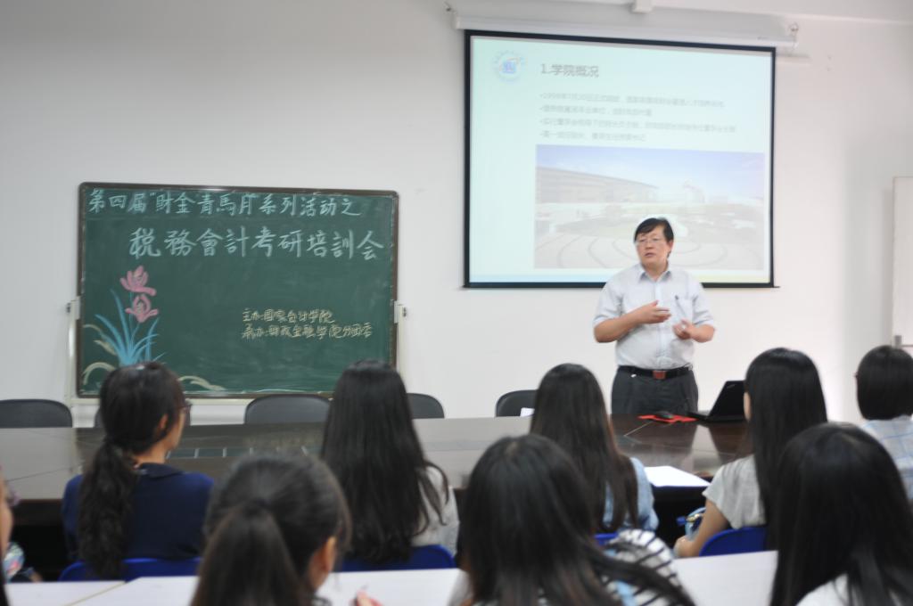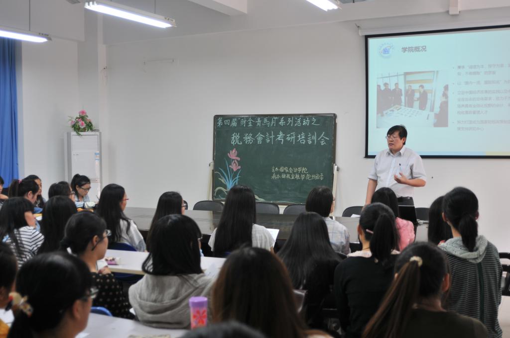 中午,由北京国家会计公司主办、财政365英国上市集团分团委承办的第四届“财金青马月”系列活动之财税会计考研培训会在田家炳313会议室举行。北京国家会计公司朱克实教授担任主讲嘉宾莅临现场,财政365英国上市集团常务副经理莫云、分团委书记兰丽娟老师及公司财政学、税务学专业的部分员工参加了本次培训会。
