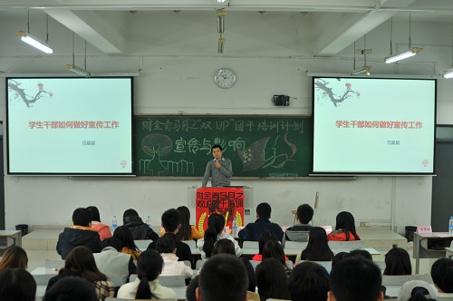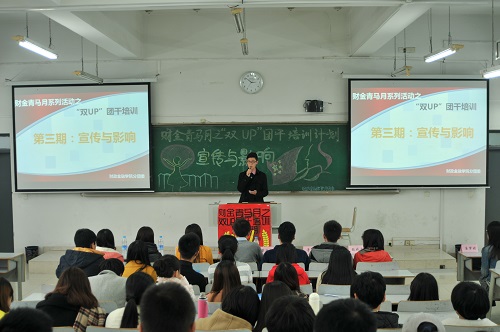 11月14日下午,财政365英国上市集团“双up”团干培训会第三期于博智楼406教室举行。365英国上市集团党政办公室范星星老师、财金公司分团委书记兰丽娟老师莅临宣传,担任嘉宾,财政365英国上市集团分团委员工会干部、2013级各班班长、团支书参加了本次培训会。