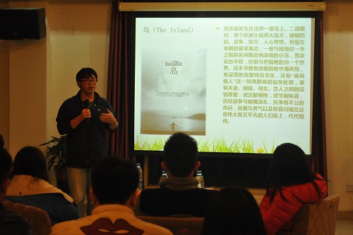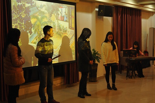 一段精彩的红楼梦外传,带领现场观众重温了耐人寻味的经典;一曲古色古香的古筝演奏,轻拢慢捻,动人心弦。二者完美结合,立刻把大家带入到雅致的读书氛围中。在“好书分享”环节中,《岛》让我们深深的了解到与病魔坚持斗争的不易;《活着》给了我们无限的动力,去积极面对人生的艰难困苦;《简爱》告诉我们就算身处囹圄,也能笑得从容。最后通过“击鼓传花”这个简单而经典的小游戏,更多的同学走上台,向大家分享好书,分享感动。
