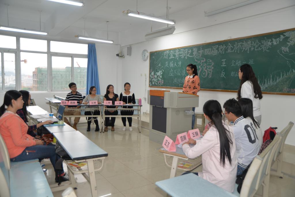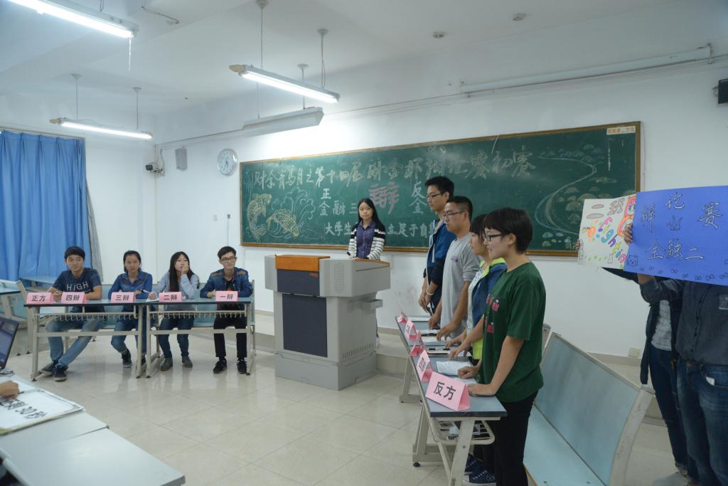 初赛共11场分三轮进行,分别围绕“发掘人才应不应该通过考试”“老员工创业应该立足于自身优势还是市场需求”“成功路上好对手与好伙伴谁更重要”进行激烈辩论。狭路相逢勇者胜,在立论、盘问、自由辩论等环节中,各参赛队伍从容迎战,舌灿莲花,论据充分,语惊四座。在激辩中指点江山,在问答中闪耀智慧。经过近三个小时的对决后14级保险一班,14级财政一、二班,14级投资一班,14级金融二、四、五、六班,14级CFA一班略占上风,晋级复赛。胡潇月、王册佳等同学荣获“最佳辩手”称号。