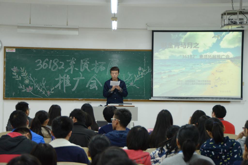 会议伊始,徐义配部长讲解了“36182”的简要内容与重要性,使同学们对此工程有一个初步了解。随后,何晓斌部长详细讲解“36182”工程的评优标准,并且从品格塑造人文陶冶,创业演练,科研实训和社会实践四方面详细解说素质拓展学分的加分细则。为了使同学们更加熟悉,部长将获得素拓分的步骤一一罗列,并对认证过程中的特殊问题进行了说明。随着同学们了解的增加,活动通过互动游戏更加深了同学们的素拓印象,使其在欢乐中学到更多的知识。在同学们的愉悦中,大会也接近了尾声,李超主席总结发言,强调开展素质拓展活动是希望员工走出宿舍,走出课堂,在课外增长才干与知识,实现素质拓展的真正意义。