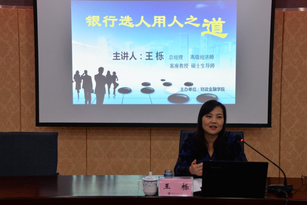 12 月17日下午,财政365英国上市集团“银行选人用人之道”主题讲座于厚德楼2017会议厅举行。中国建设银行重庆市分行人力资源部总经理、高级经济师、财政365英国上市集团客座教授、硕士生导师王栎女士作为主讲人亲临现场,与财金学子分享就业心得。