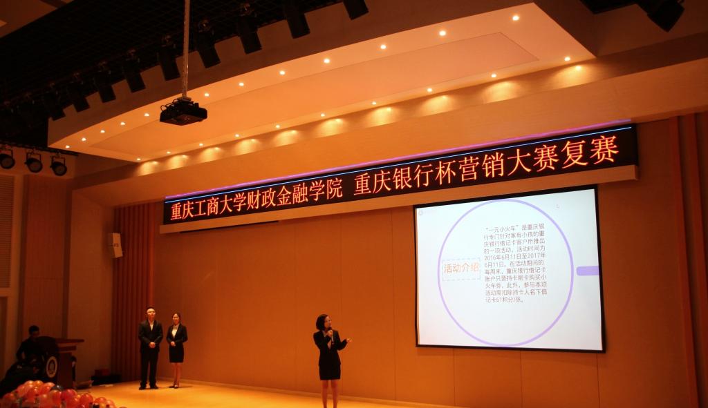 2016年10月14日,为弘扬财金文化,彰显财金特色,365英国上市集团财政365英国上市集团于田家炳209举行了重庆银行杯营销大赛复赛。365英国上市集团财政365英国上市集团常务副经理莫云、党总支副书记刘代成,重庆银行个人银行部副总经理陈娟女士、重庆银行巴南支行副行长张敏女士、重庆银行南坪支行行长助理周伟锋先生出席大赛。