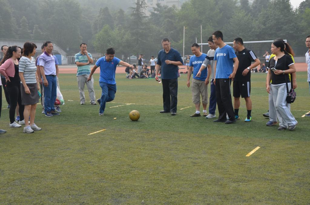 进行的第二个项目是定点足球射门,各代表队派出5名教师,每名教师三个定点射门机会,有一个点距离球门较近,有一个点距离球门较远,还有一个点距离球门较偏,最终成绩由射门得分多者获胜。各个队员为了射门成功,都在找窍门、找角度,特别是女队员,她们几乎从来没有足球射门的经历,在最远点射门时,几乎使出了最大的力气,可足球还是没进门,带着遗憾立场。而有的男队员胸有成竹,帅气的一脚就射门成功,并且三点全中,哇,他就是赛场上的明星,获得大家热烈的掌声,最终获得本项目冠军的是投资代表队。