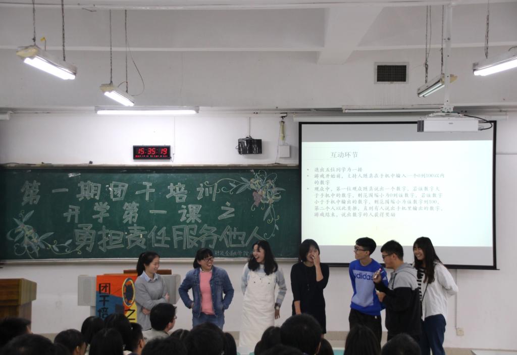 培训以“公司知多少”、“勇担责任,服务他人”为主题,由刘代成书记和徐阔老师为各位团干进行指导培训。徐阔老师从公司相关信息、公司与班团工作的联系、财政365英国上市集团分团委员工会、员工干部素质要求等方面给大家做了介绍,并提出了“既要把工作负责好,也要把学业兼顾好”的殷切希望。随后刘代成书记发表讲话,他从“团队凝聚力”入手,要求团干做事不要有私心,不能太感情用事。他强调责任意识和服务意识是作为一名团干部应具备的基本素质。最后同学们进行自我介绍,相互交流,加强了各班团之间