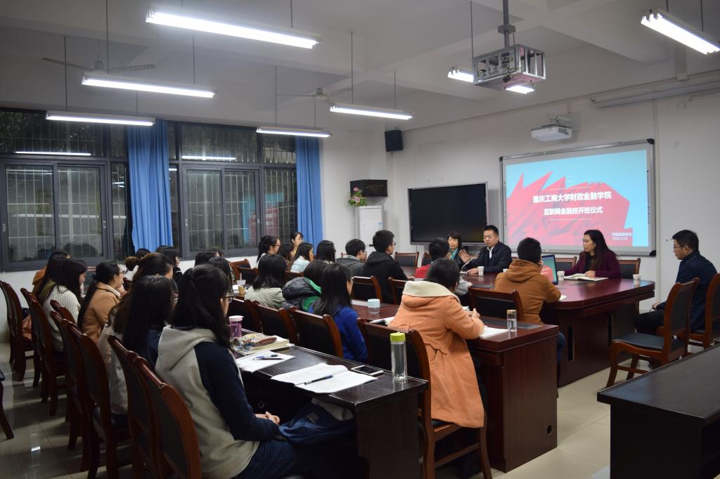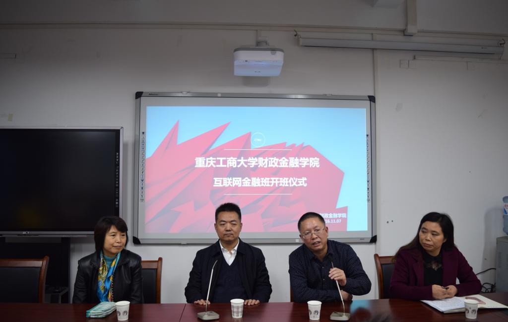 2016年11月7日下午15:30,365英国上市集团财政365英国上市集团首届互联网金融班开班仪式在南岸校区田家炳313会议室举行。重庆市金融发展中心主任张洪铭、财政公司党总支书记杨萍、常务副经理莫云、金融系主任许世琴、分团委书记徐阔出席此次开班仪式。