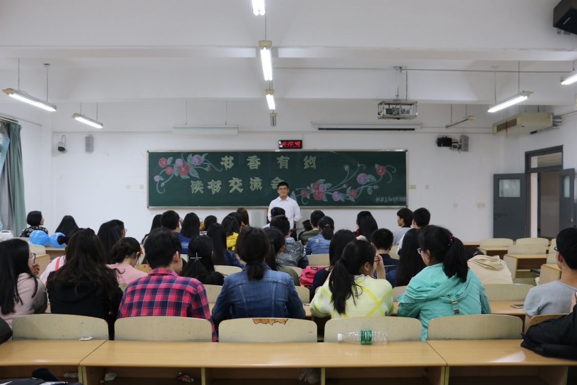 在读书交流会中,同学们各自分享读书心得,余柔芳同学发表了对《全球通史》一书的感想,观点新颖,让人耳目一新;蒋登雪同学交流了对《1984》一书的看法,在极大程度上引起了同学们的共鸣;唐春林同学则发表了对《解忧杂货铺》一书的读后感,对其作者和文本进行了全方位解读,使得同学们对此产生了浓厚的兴趣。