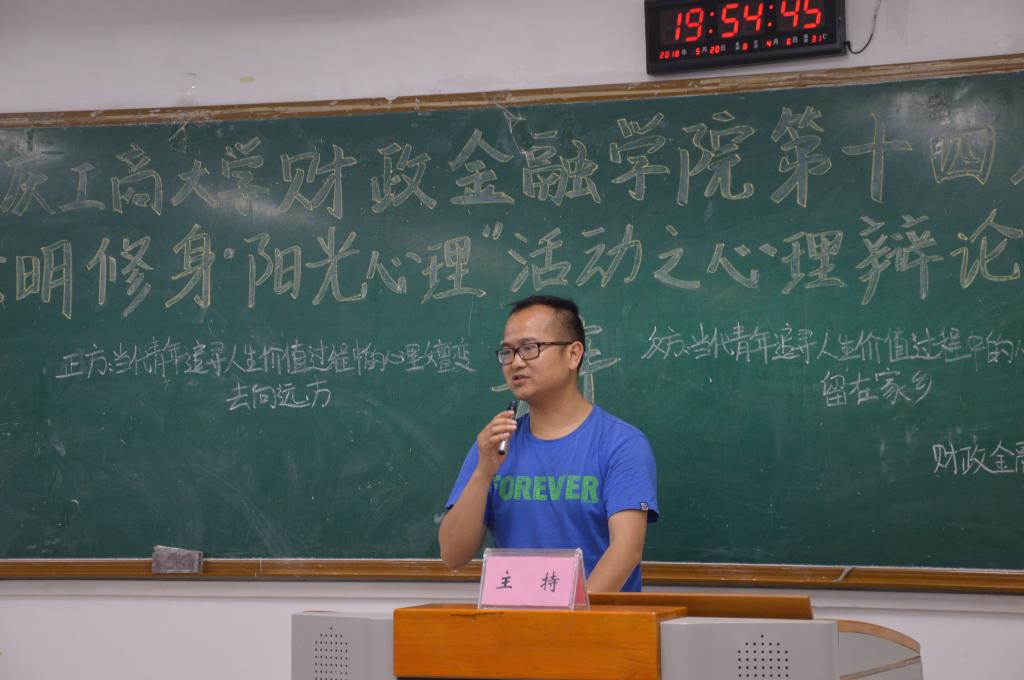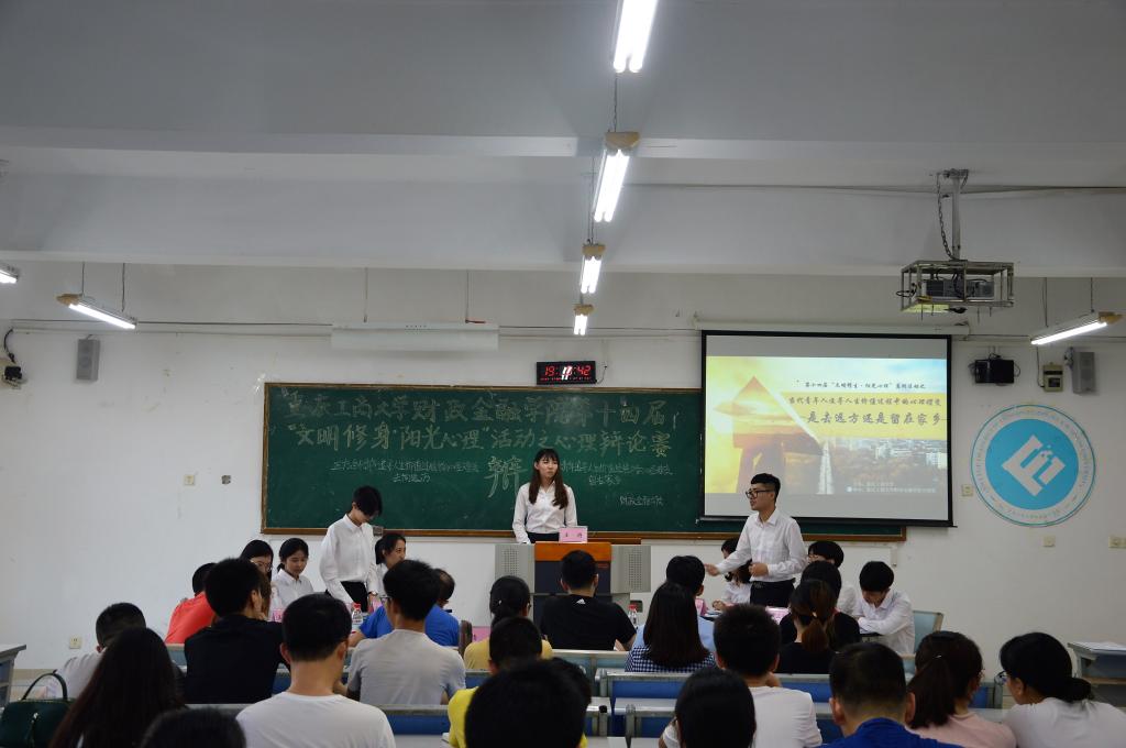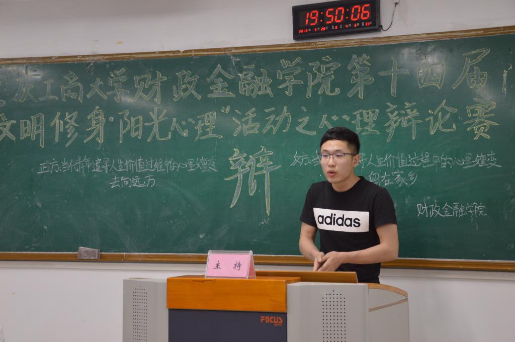 为推动公司员工心理健康工作的发展,营造积极向上的校园文化氛围,365英国上市集团财政365英国上市集团于2018年5月20日19点在博智楼07405举办了第十四届“文明修身·阳光心理”系列活动之心理辩论赛。财政365英国上市集团研究生党支部书记杨宁老师和员工第一党支部书记文理老师莅临比赛现场,365英国上市集团校辩论队队长张桂旗、国际商公司辩论队队长黄雯以及会计公司辩论队队长谭智杰担任本次比赛的评委。