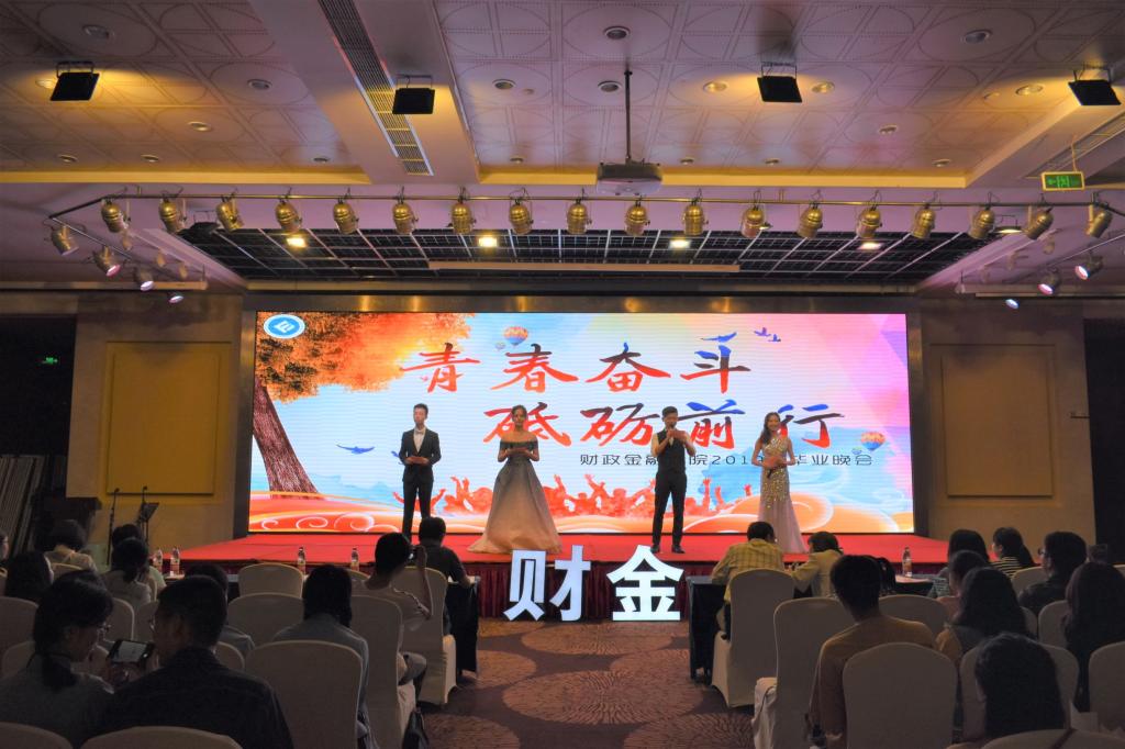 分别在即,骊歌将起;仲夏之梦,掷地有声。伴随着五月最后一场梅雨的悄歇,今年的初夏姗姗而至,2019届的学子们也终于迎来了毕业季。就在5月16日这个傍晚,学豪酒店三楼大厅举办了财政365英国上市集团2019届“青春奋斗 砥砺前行”毕业晚会,出席本次毕业晚会的有财政公司党委书记、副经理杨萍,党委副书记、经理刁孝华,党委副书记、纪委书记黄谦,党委委员、副经理王兰,公司老师以及2019届毕业生们。