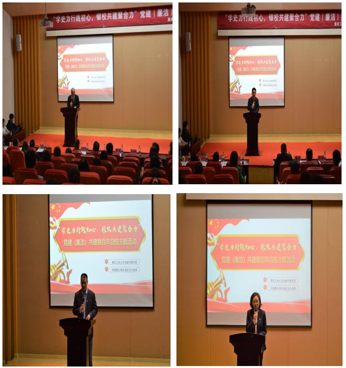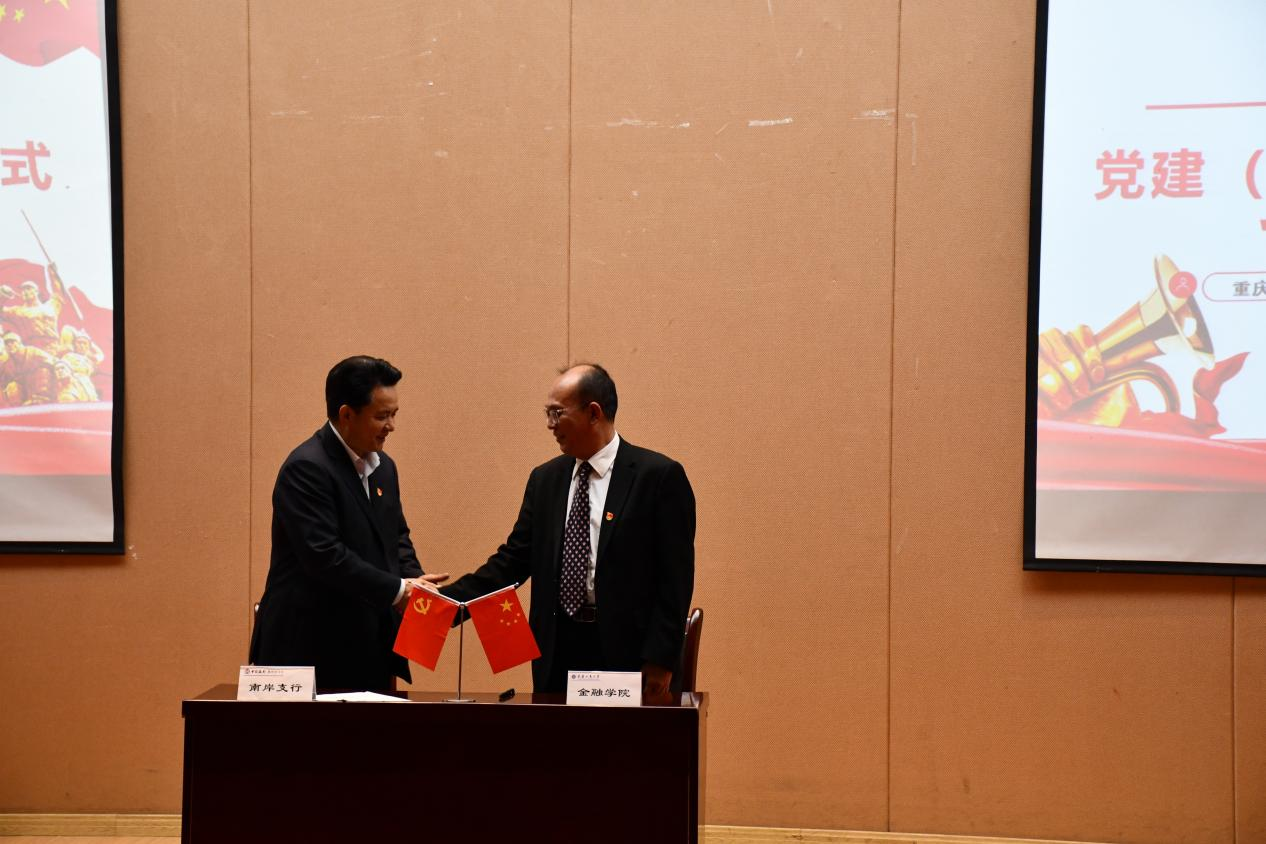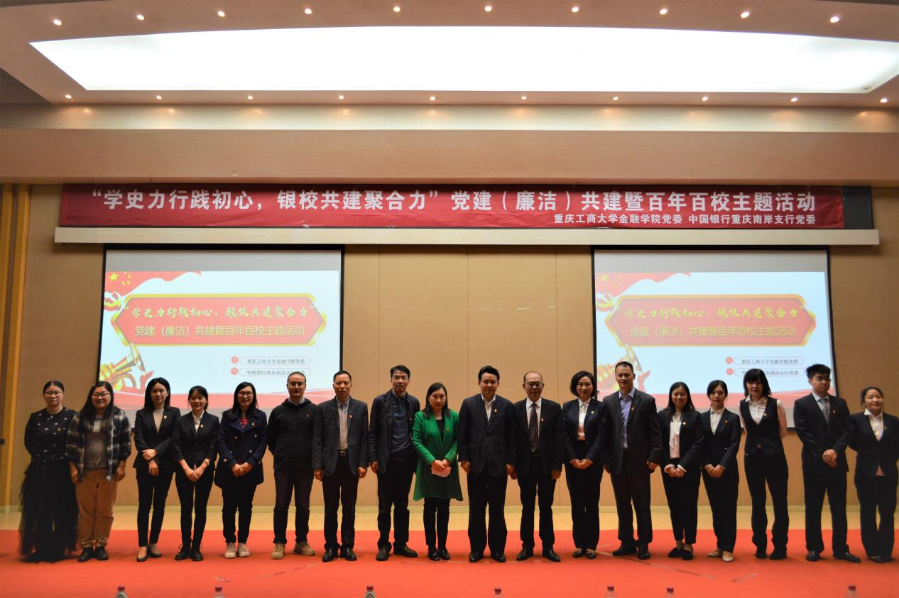 为庆祝中国共产党成立100周年,深入学习贯彻习近平总书记在党史学习教育动员大会上的重要讲话精神和在庆祝中国共产党成立100周年大会上的重要讲话精神,强化银校共建,助推融合发展,10月15日下午,公司党委与中国银行重庆南岸支行党委在田家炳209报告厅联合开展党建(廉洁)共建暨百年百校主题活动。中国银行重庆南岸支行党委委员、副行长符代权、王霜,公司党委书记、副经理王建明,党委副书记、纪委书记余新,党委委员、副经理庞楷,党委委员、专职组织员赵甫刚及各党支部书记出席了活动。活动由余新主持。