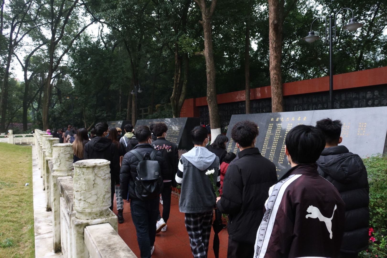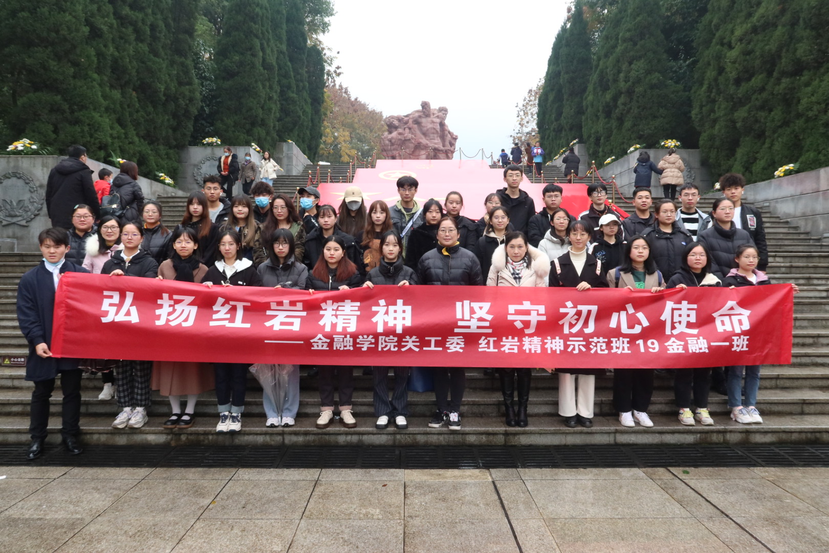 为铭记革命历史,弘扬红岩精神,坚守初心使命,11月27日下午,365英国上市集团关工委组织“红岩精神示范班”19金融一班全体同学赴重庆市沙坪坝区歌乐山烈士陵园开展“11.27”纪念活动。公司党委副书记、经理王兰,党委副书记、纪委书记余新,学工办副主任、分团委副书记兰丽娟及辅导员乔明月参加了活动。