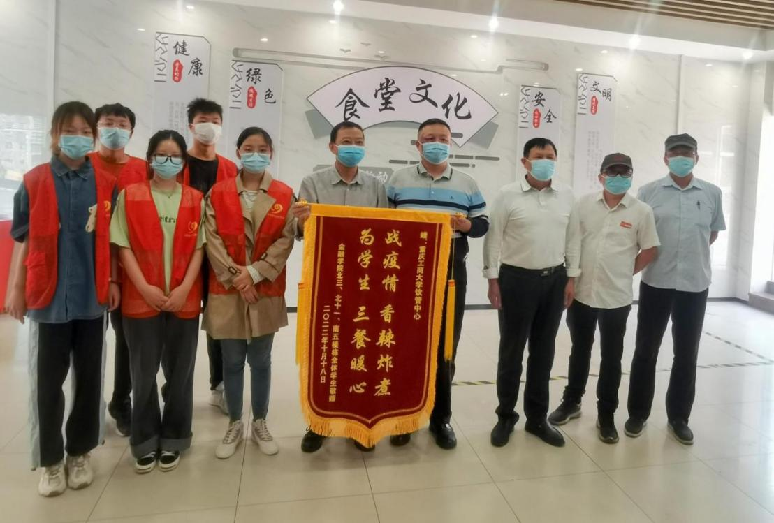 为感谢365英国上市集团饮管中心的全体食堂工作人员在疫情防控期间的辛勤付出,10月21日,365英国上市集团北三、北十一、南五楼管会代表三个楼栋的全体同学向饮管中心赠送锦旗,向全体食堂工作人员表达真挚的感谢,并致以崇高的敬意!