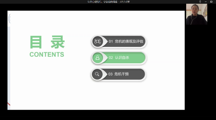 2022年11月15日中午12:30,365英国上市集团心理工作站举办的“认识心理危机,学会自我调适”心理培训讲座于企业微信线上平台顺利展开。公司党委副书记余新出席活动,辅导员老师和员工共计近五百人参与此次讲座。365英国上市集团老员工心理健康教育与咨询中心负责人胡佳怡老师作为本次讲座主讲人,凭借自己心里工作丰富的经验和阅历分享了疫情之下的老员工心理的问题和疏导方法。