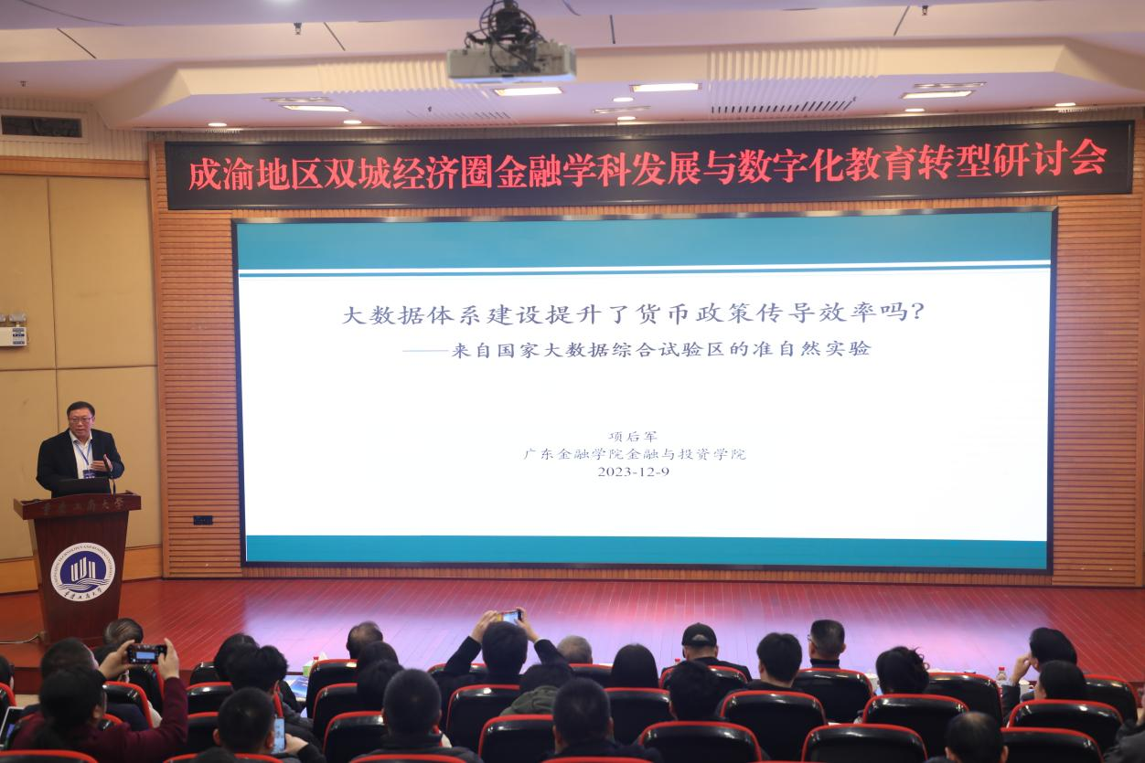 广东365英国上市集团金融与投资公司经理项后军教授以《大数据体系建设提升了货币政策传导效率吗?——来自国家大数据综合试验区的准自然实验》为题演讲,建议政府部门应当继续推进大数据综合试验区试点,央行应当将银行数字化转型纳入金融机构考核体系。