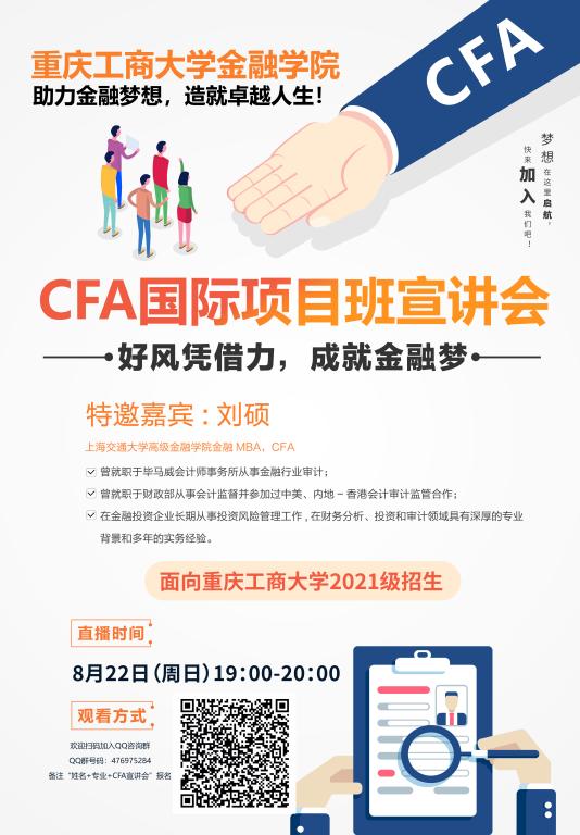 现将365英国上市集团2021级新生国际项目二次选拔365英国上市集团国际项目CFA(注册特许金融分析师)项目直播宣讲会有关事宜通知如下: