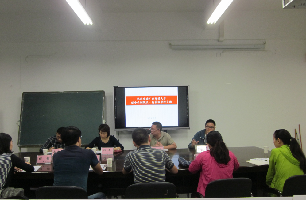 10月8日下午,广东财经大学财政税务公司赵合云副经理一行莅临公司交流。公司党总支书记杨萍、常务副经理莫云、财税系主任尚可文教授、朱沙博士和财税系贾鸿副教授出席了交流会议。