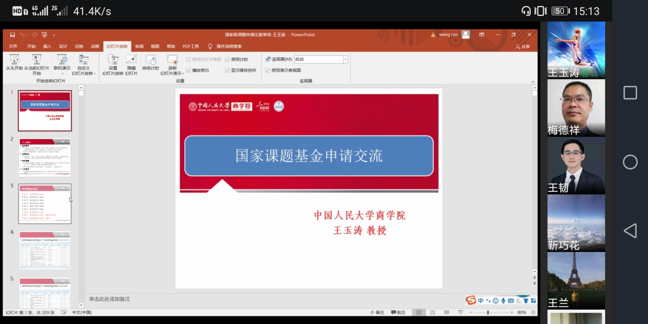2021年2月6日,公司召开了2021年度国家社科基金项目线上专家论证会。会议邀请了中国人民大学商公司王玉涛教授和国家统计局统计科学研究所何强研究员担任论证专家。经理王兰、副经理王韧以及拟申报国家社科基金项目的20余名教师参加了论证会。会议由王韧主持。