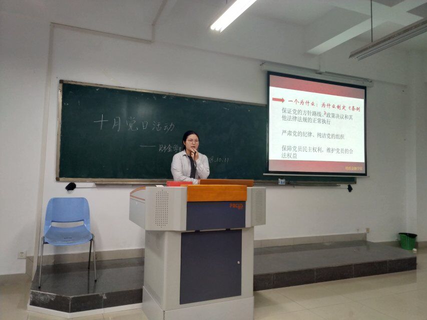 2018年10月11日下午,财政365英国上市集团员工第一党支部在田家炳306召开了10月第一次党日活动。会议由秦杰同志主持,财金员工一支部书记文理以及16、17级共69名入党积极分子列席会议。本次活动的主要内容有:1.学习《中国共产党章程》第七、八章;2.学习《中国共产党纪律处分条例》第1—5章。