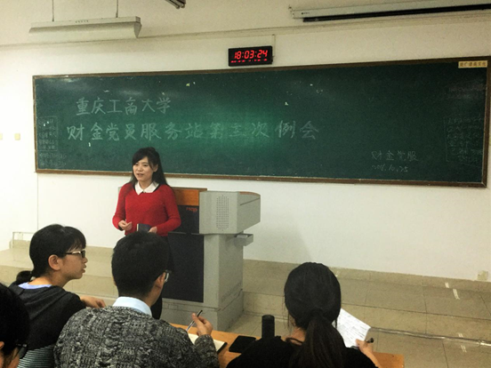 财金党服实行值周站长制。此次会议由分管宣传部的谭青梅站长主持。会议伊始,谭青梅站长首先对上周的财金党服换届大会的顺利举行进给予了充分肯定,并对存在的问题进行了反思。