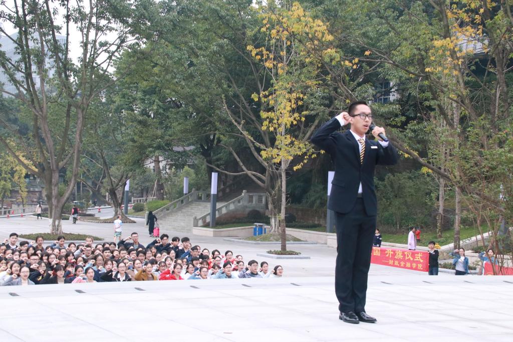 本次升旗仪式的举行旨在让财金学子进一步认识党的十九大会议精神,将十九大精神内化于心,外化于形;进一步加强爱国主义教育,增强师生的集体荣誉感,使命感和民族责任感;实现社会价值及个人价值,弘扬青年老员工爱国主义精神!
