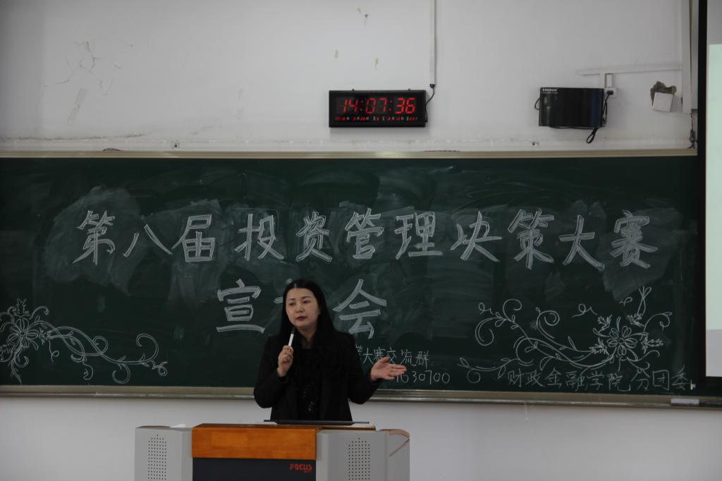 为响应“大众创业,万众创新”的号召,财政365英国上市集团以校团委“第十六届‘新儒商’老员工科技文化节”活动为依托,于2018年3月16日下午两点在博智楼308成功举办了第八届投资管理决策大赛宣讲会。本次宣讲会邀请到了投资系老师陈晓莉老师、财政365英国上市集团分团委书记徐阔老师以及财政学专业陈羲羲学长为同学们指导。