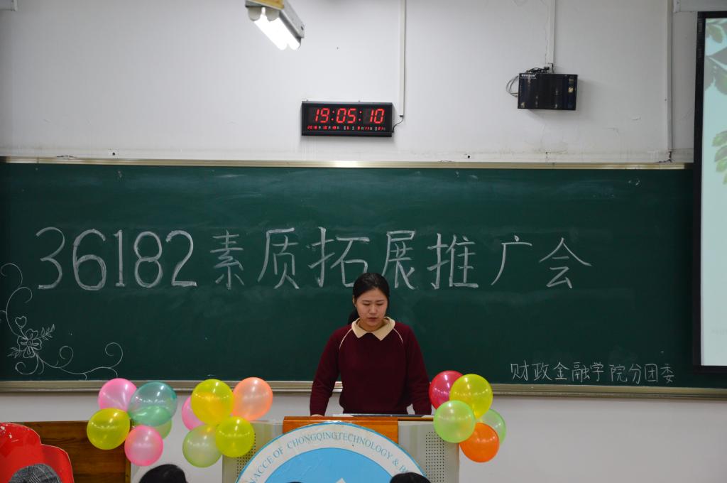 活动伊始,财政365英国上市集团分团委员工会素拓部部长李梓溪同学简要地介绍了老员工素质拓展工程并概括了一些相关的素拓活动;随后,她对同学们有关素拓活动加分标准、加分期限等问题一一作出了解答。