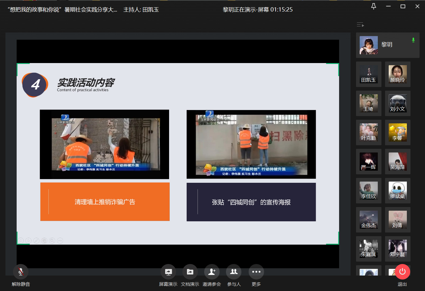 在本次暑期社会实践分享大赛中,十位参赛选手相继分享他们的故事,不仅为百余名观众提供了实习实践的宝贵经验,同时也增强了同学们对实践学习的认知与感触。