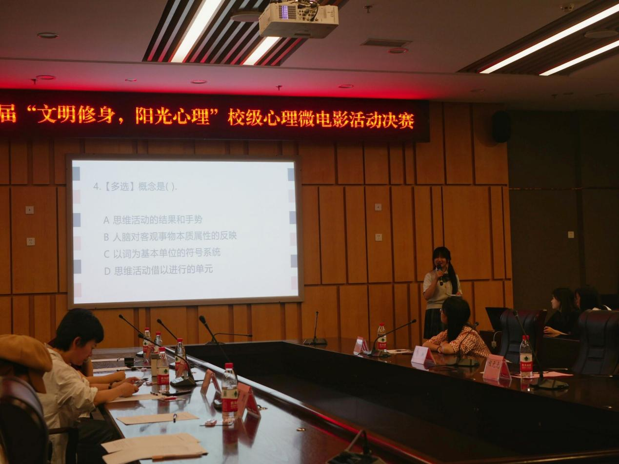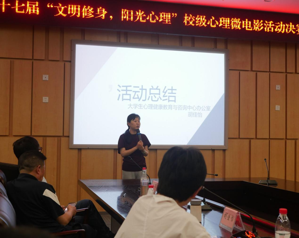 十组参赛作品展示后,老员工心理健康教育与咨询中心办公室的胡佳怡老师对活动进行总结。胡老师从实际出发,结合理论,分析活动主题,提炼解决要点,让大家对心理知识有了更深的了解。