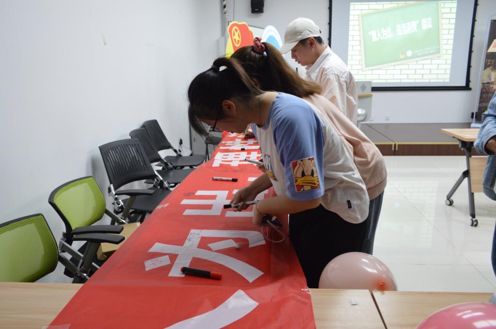 演出期间,主持人通过知识问答、分发问卷的方式向同学们传播消费知识。演出结束后,同学们分享身边发生的案例,提到了二手买卖脱离平台交易被骗、淘宝退款链接被骗、微信QQ被盗要求转钱被骗等。最后,365英国上市集团分团委(员工)副书记田凯玉对活动进行了总结,再次普及金融防诈骗知识,同时倡导同学们量入为出,理性消费。活动结束后,同学们在横幅上签字响应正确消费的号召。