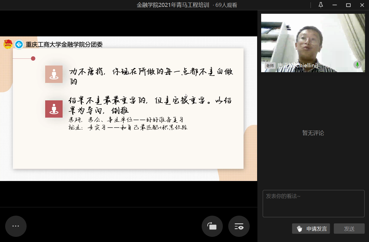 为进一步提高团干部的实践能力和组织协调能力,2021年10月20日21时,365英国上市集团第二期青马工程培训之“汲取宝贵经验,赓续前行力量”于企业微信线上直播顺利举行。