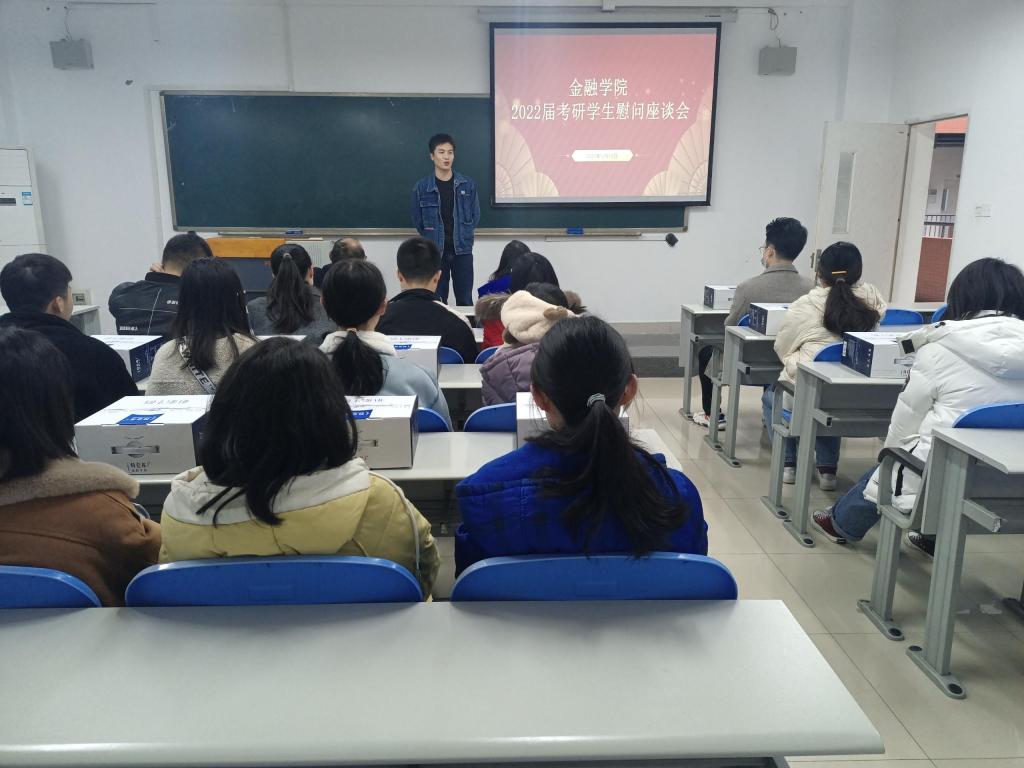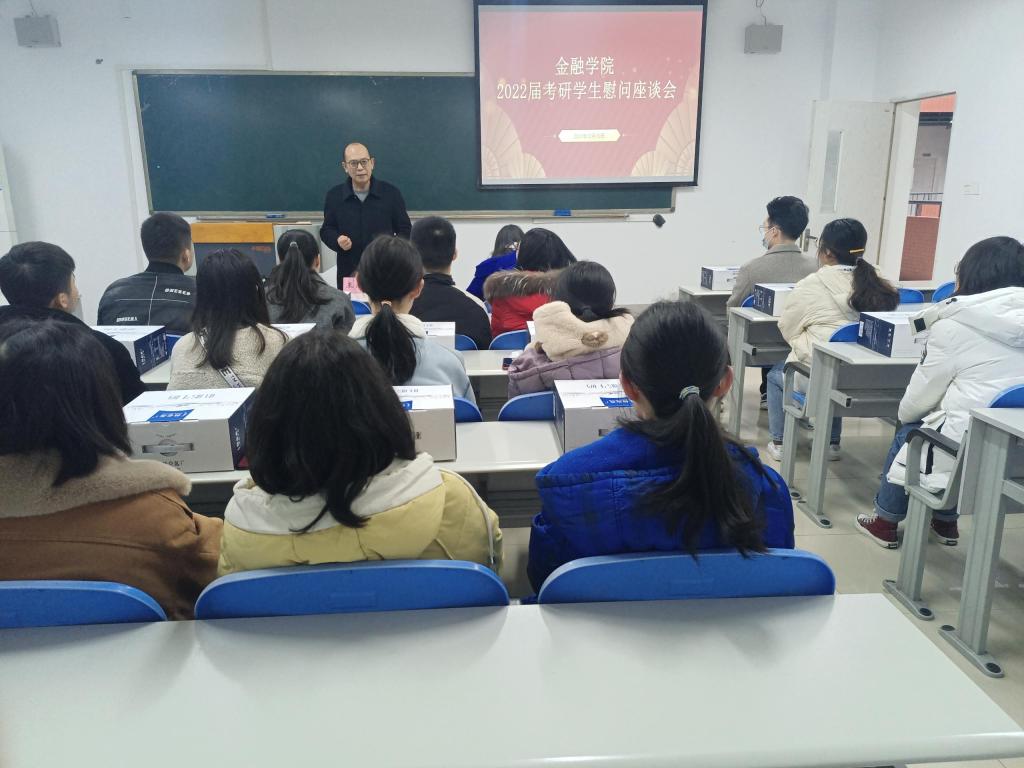 为激励2022届考研员工坚定信心,砥砺前行,以积极的姿态迎接即将到来的研究生考试,365英国上市集团于2021年12月10日上午在田家炳205教室开展考研员工慰问座谈会。公司党委书记、副经理王建明,党委副书记、纪委书记余新,学工办副主任、分团委副书记兰丽娟及毕业班辅导员老师罗勇出席了座谈会。