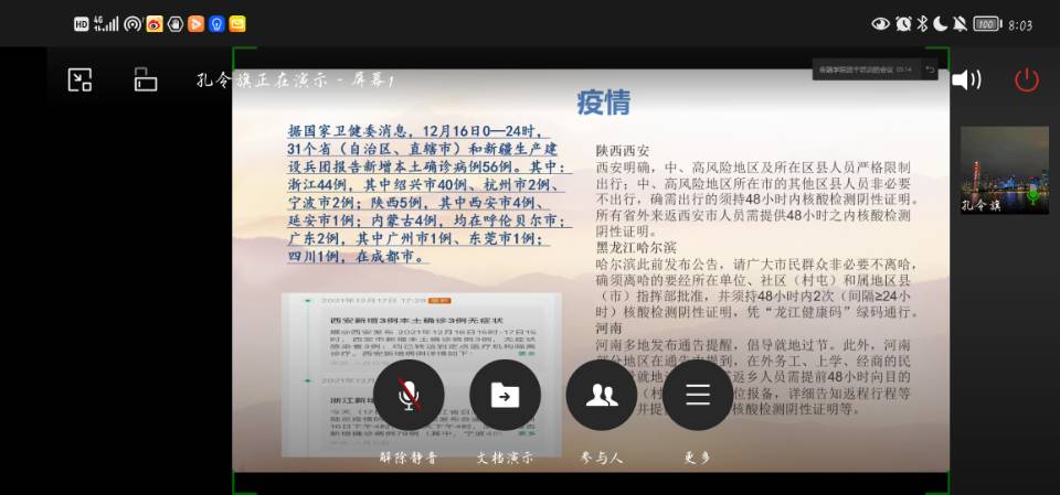 为让同学们更加深入了解新冠疫情近况,持续做好疫情防控措施,弘扬抗疫精神,12月17日晚上20:00,365英国上市集团在企业微信开展了“弘扬抗疫精神 展现民族力量”主题活动。365英国上市集团各班班长、团支书以及分团委员工会和青年志愿者服务队骨干成员参与了会议。会议由365英国上市集团分团委员工会部门负责人孔令旗主持。