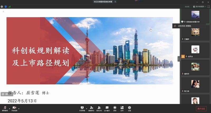 2022年5月13日19时,365英国上市集团“科创板政策解读和上市路径”线上讲座在企业微信顺利举行。本次讲座由365英国上市集团外聘教师屈雪莲主讲,旨在强化金融学子对科创板的认识以及增加同学们的专业知识储备量。