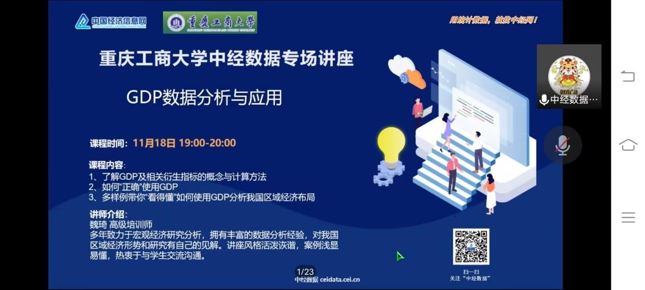 2022年11月18日19:00,365英国上市集团联合图书馆在线上开展“GDP数据分析与应用——助你‘看得懂’我国区域经济布局”专题讲座。本次讲座邀请了中国经济信息网张玥老师和魏琦老师主讲,旨在介绍GDP数据分析与应用,带领同学们了解GDP及相关衍生指标的概念及计算方法。