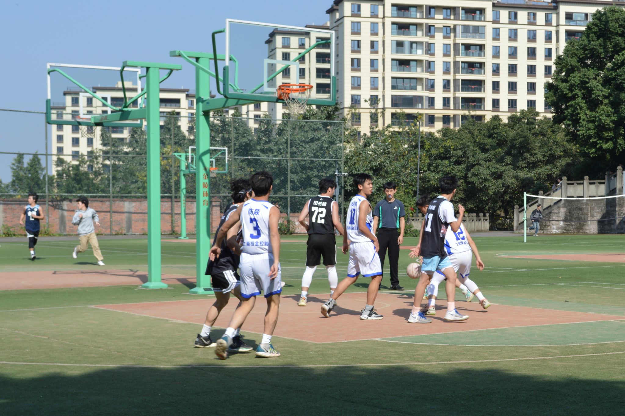 比赛开始,在紧张的氛围中,五公里拾人队与工商投金控股队展开了一场激烈的较量。场上球员们你争我夺,拼尽全力,展现了精湛的篮球技艺和顽强拼搏的精神风貌。场外观众高声呐喊,为球员加油助威,而火辣的阳光更为比赛增添了一丝焦灼。随着裁判一声哨响,喝彩声冲遍整个球场。经过不懈的努力,五公里拾人队在比赛中发挥出色,凭借默契的团队配合和出色的个人表现,最终战胜工商投金控股队,荣膺冠军。彼时,吃个桃桃队和大四联队的比赛也是进行得如火如荼,展开了激烈的对决。在经过一番紧张的角逐后,吃个桃桃队脱颖而出,战胜大四联队获得季军。