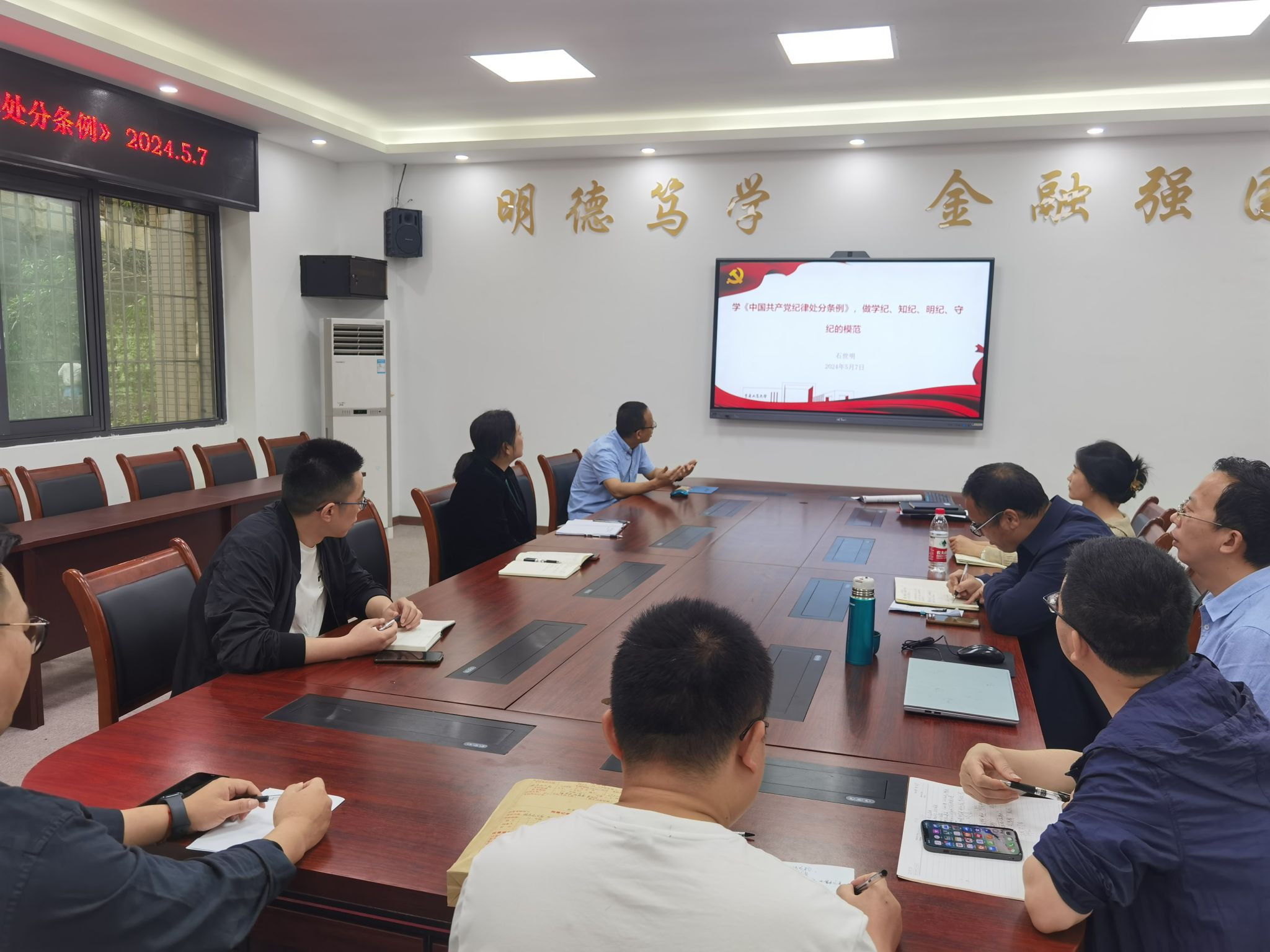 5月7日上午,公司召开党委理论学习中心组学习会暨党纪学习教育读书小组集体学习会,专题学习《中国共产党纪律处分条例》(简称《条例》),读书小组采取会前自学和会上集中学习相结合方式进行。公司全体党委委员、公司领导班子等参会。公司党委书记石世明主持学习会。
