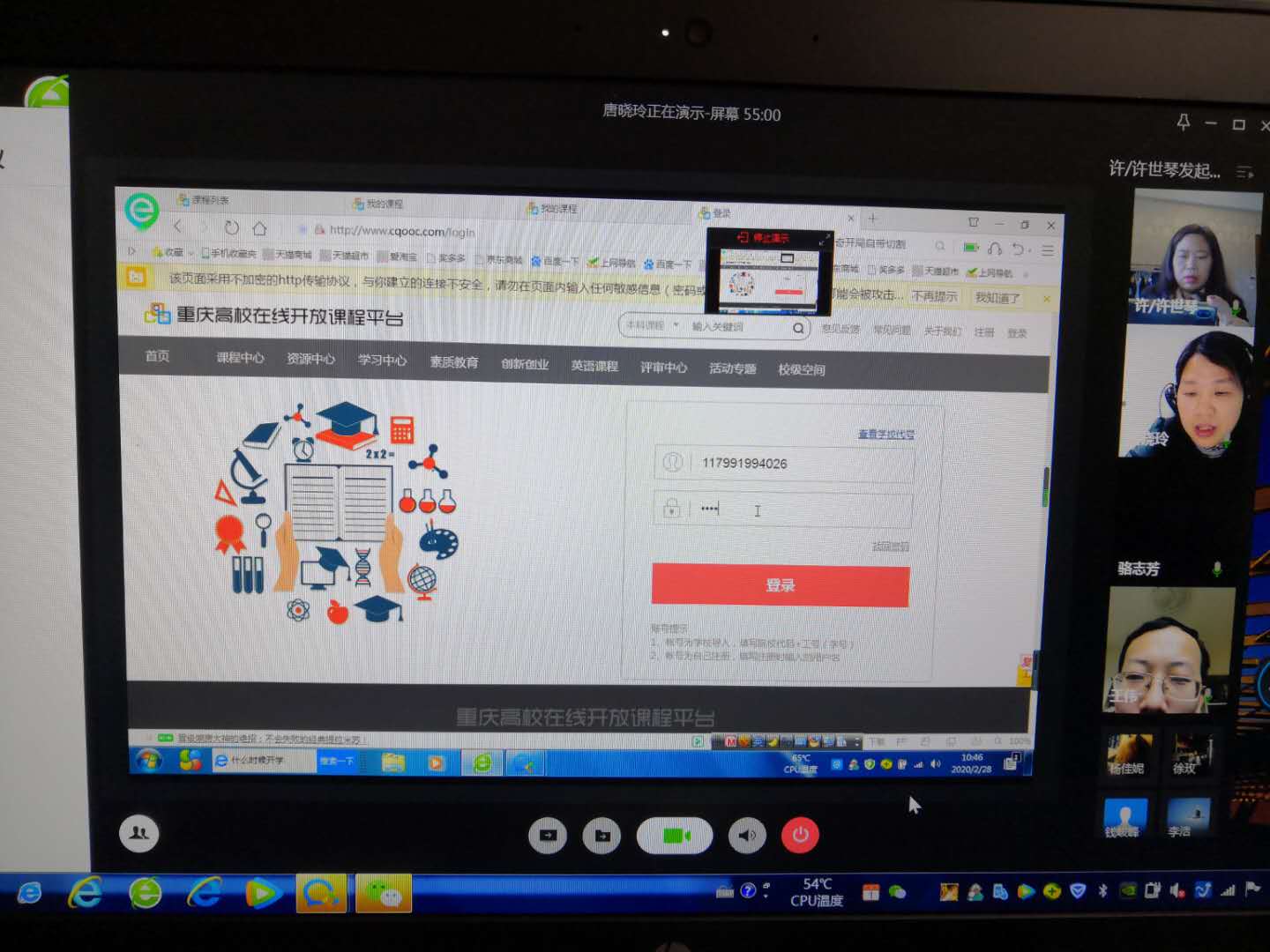 会议由金融系主任许世琴主持,课程组组长骆志芳教授和本学期《金融学》课程全体授课教师参加了会议。会上,许主任对《金融学》线上课程建设情况作了介绍,该课程依托重庆高校在线平台建设,2018和2019年分别被认定为重庆市和国家级精品在线课程,已经完整开课三次,本次是第四次开课。尽管大多数老师能够熟练运用平台,但由于疫情原因,老师无法与员工当面交流沟通,为了以保证教学的正常运行,提出了几点注意事项:一是要求老师采用“1+1”的教学模式,第一个“1”是运用重庆市高校在线平台,第二个“1”是建立班级企业微信群;二是要求每位授课老师必须提前做好教学准备,调试好线上教学设备、建立企业微信群、提供平台网址及告知登陆流程等;三是做好线上课程考核标准,确保“教学内容不缩水、教学标准不降低”。