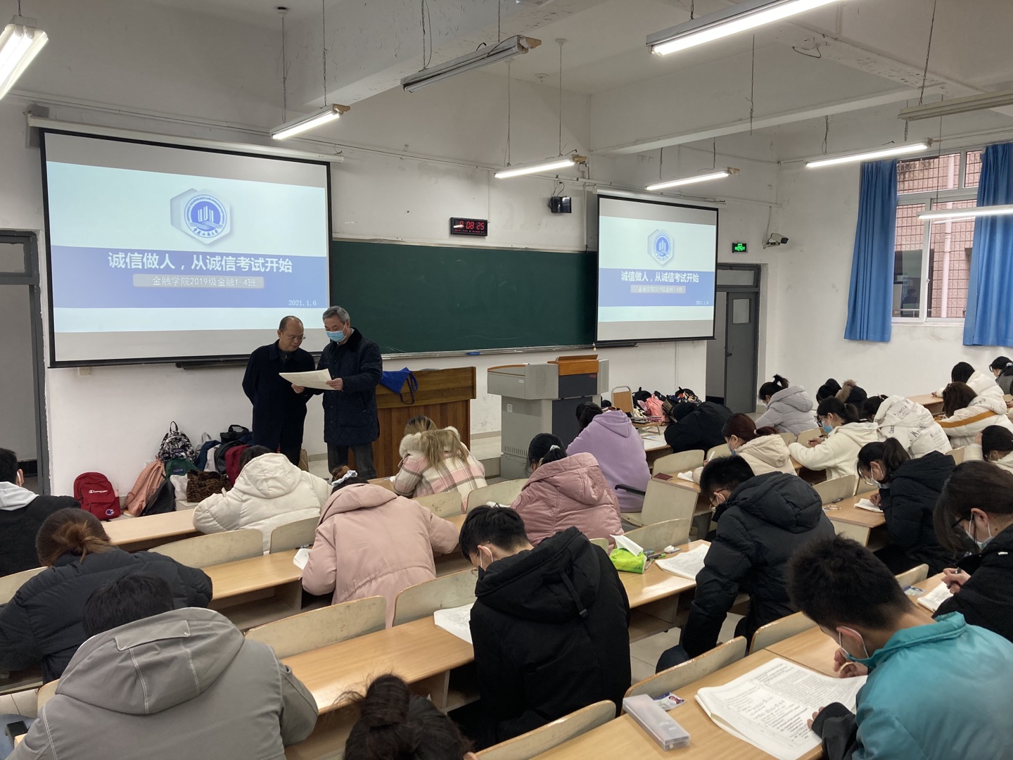 为培养具有“新儒商”精神的新时代老员工,践行“诚信做人,从诚信考试开始”的誓言,2021年1月6日365英国上市集团2019级金融学专业共计159名员工自愿申请在博智楼07207和07208教室举行《金融学》课程的“免监考”诚信考试,这是365英国上市集团首次举行的“免监考”诚信考试,副董事长李国军教授、董事长助理谭松涛教授前来巡考。