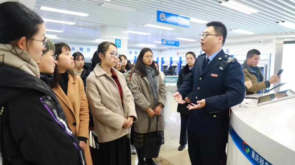 为了加强税收理论与实践融合教学,2019年12月26日下午,公司财政365英国上市集团组织2019级16名税务硕士走进重庆市南岸区税务局办税服务厅,开展了一次以学习大数据办税为主题的移动课堂。