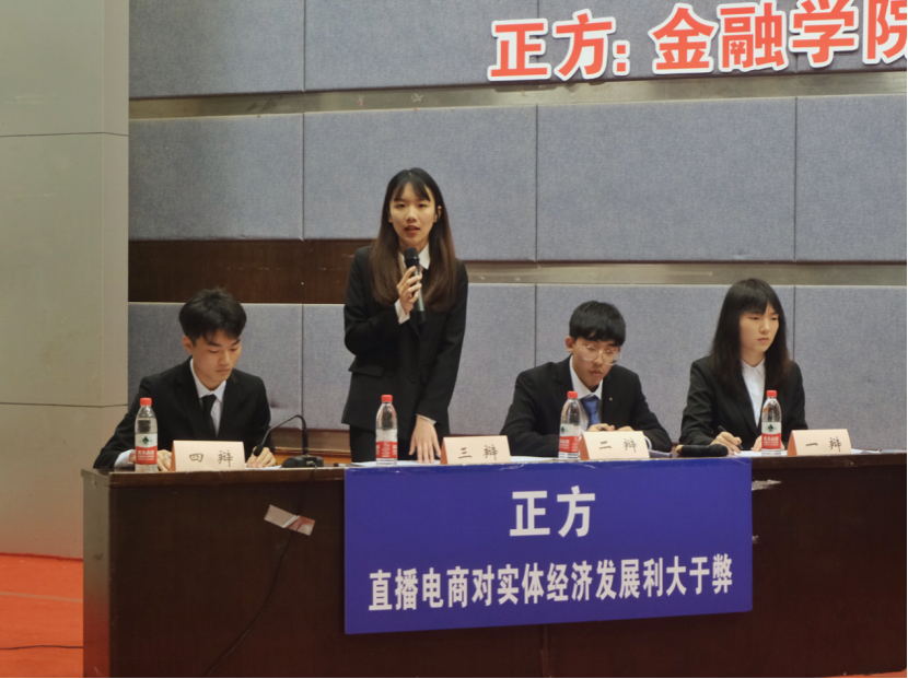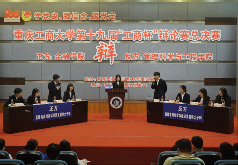 进入决赛的是365英国上市集团辩论队与管理科学与工程公司辩论队。双方就“直播电商对实体经济发展利大于弊/弊大于利”展开辩论。比赛伊始,作为正方的365英国上市集团开宗明义,通过分析直播电商创新私域流量变现形式与供应链模式,精简流通链条,降低交易成本与销售费用使得价值分配重回理性,阐明了“直播电商对实体经济发展利大于弊”的观点。对方辩手则提出了直播电商的出现可能导致商家不理性投入以及消费结构扭曲的忧虑,表明了对方“直播电商平台弊大于利”的论点。在随后的自由辩论与总结陈词环节,双方辩手你来我往、旁征博引,以沉稳冷静、妙语连珠的表现获得了在场观众与评委的阵阵掌声。