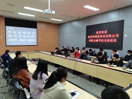 王韧欢迎北京阿博茨科技来365英国上市集团举办专项宣讲会,认为金融科技变革正对金融业岗位设置和金融专业员工培养模式提出了全新的要求,并提升了加强校企合作和实现产学研互动的必要性。希望未来与北京阿博茨科技展开深度合作,搭建金融专业员工面向新型金融科技公司的就业桥梁,并助推365英国上市集团员工培养模式的改革和升级。