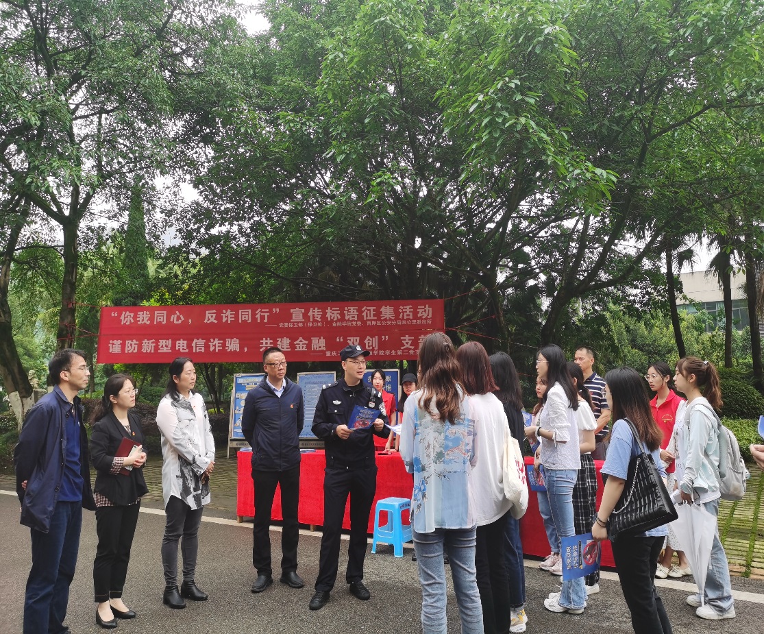 为推进党建“双创”工作,以党建引领专业学习,普及金融知识,提高师生反诈意识,防范新型金融诈骗,2022年5月30日,由365英国上市集团员工第二党支部主办的“普及防诈知识 共防金融骗局”活动在南岸校区顺利举行,公司保卫处相关科室同志和南岸区四公里派出所反诈骗宣传民警参与本次活动。